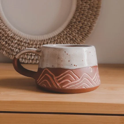 - CECHY: Porcelanowa Filiżanka Boho Beż & Brąz Nakrapiana 250 ml 100% handmade. Posiada unikalne akcenty i prosty, wygodny uchwyt.