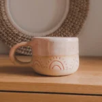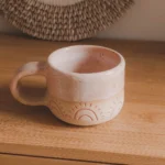 - CECHY: Ceramiczny Kubek z Beżowej Nakrapianej Gliny 200 ml 100% handmade. Posiada unikalne, ręcznie rzeźbione akcenty i prosty wygodny uchwyt.