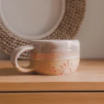 - CECHY: Ceramiczny Kubek z Beżowej Nakrapianej Gliny 250 ml 100% handmade. Posiada unikalne, ręcznie rzeźbione akcenty i prosty wygodny uchwyt.
