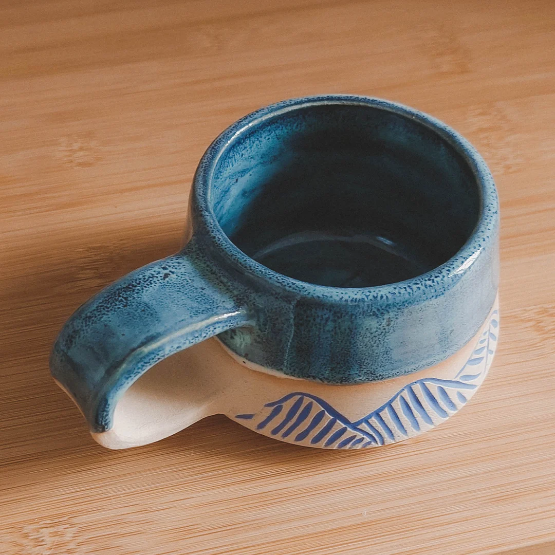 - CECHY: Ceramiczny Kubek z Beżowej Nakrapianej Gliny 200 ml 100% handmade. Posiada unikalne, ręcznie rzeźbione akcenty i prosty wygodny uchwyt.